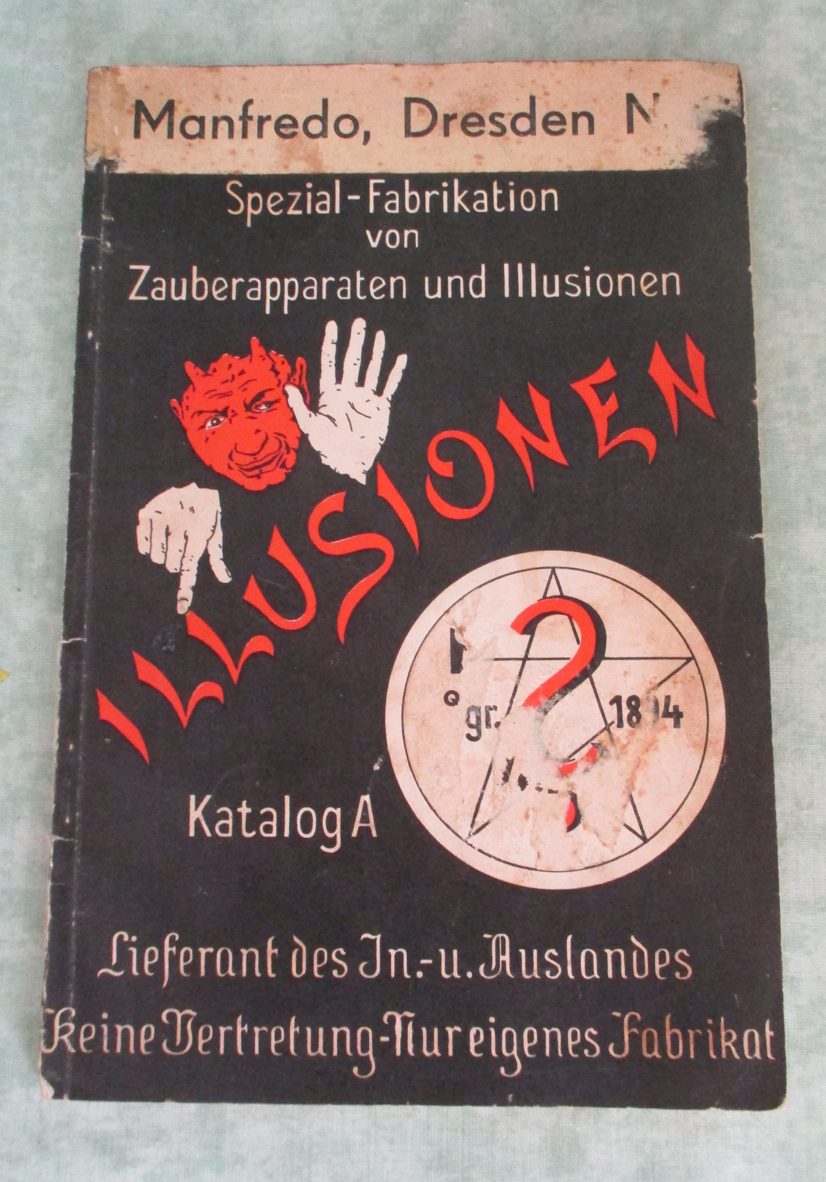Firmengeschichte + Firmenkataloge Manfredo, Dresden. Spezial-Fabrikation von Zauberapparaten und Illusionen. Katalog A. Um 1930. 91 Seiten. Mit leichten Gebrauchsspuren, aus der Gesamtsicht gutes Ex.!