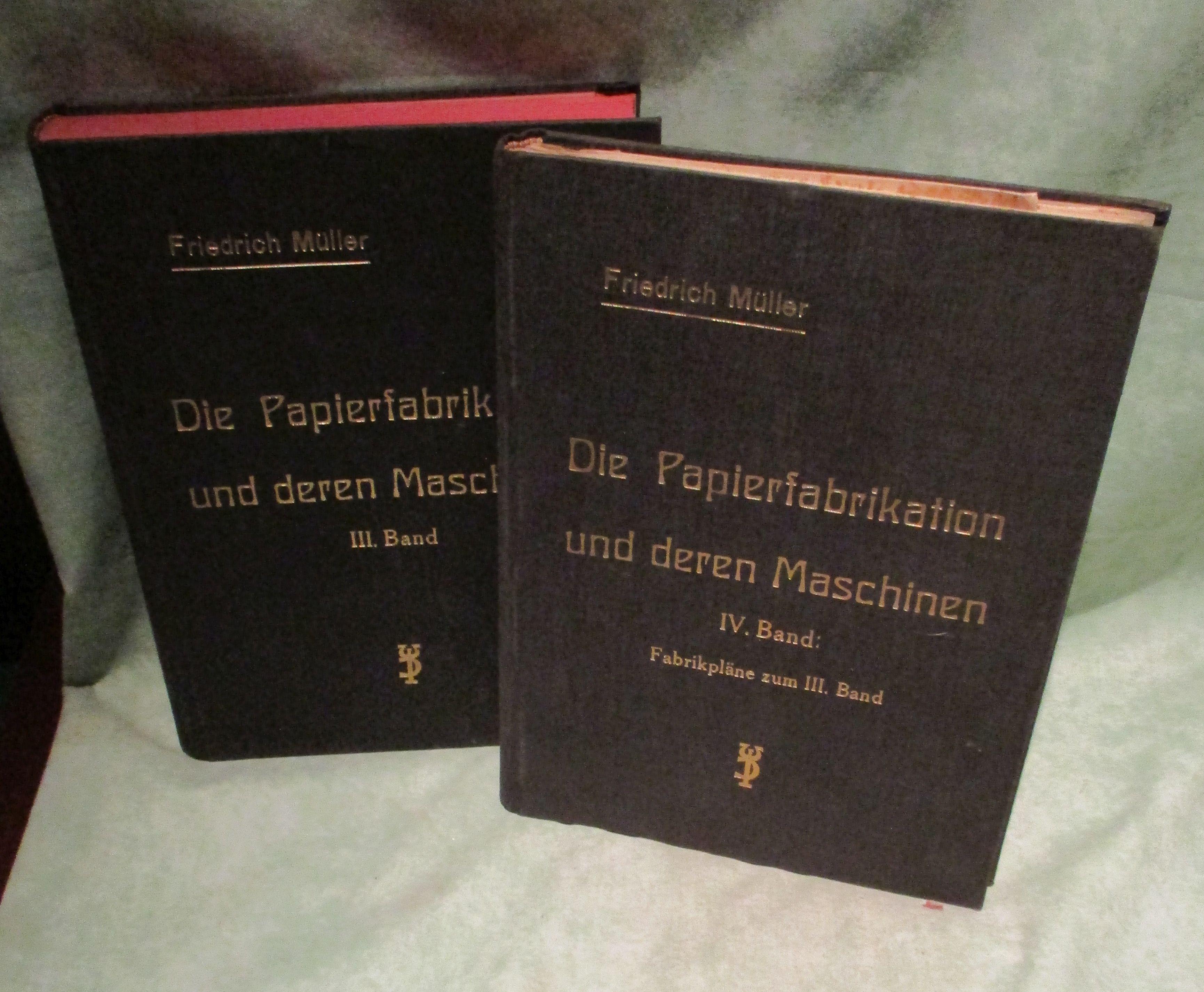 Maschinenbau Müller, Friedrich. Die Papierfabrikation und deren Maschinen. Ein Lehr- und Handbuch. III. und IV. Band: Anlagen von Holzschleifereien, Zellstoff- und Papierfabriken. 246 Skizzen im Text des III. Bandes und 22 Pläne von Fabriken im IV. Band. Erste Ausgabe. 2 Bände Biberach-Riß. Vlg. des „Wochenblattes für Papierfabrikation“ Güntter-Staib. 1930 -4°. VIII. 515 Seiten,. Originalleinen mit goldgepr. Titel. Minimale Gebrauchsspuren, gute Ex.!