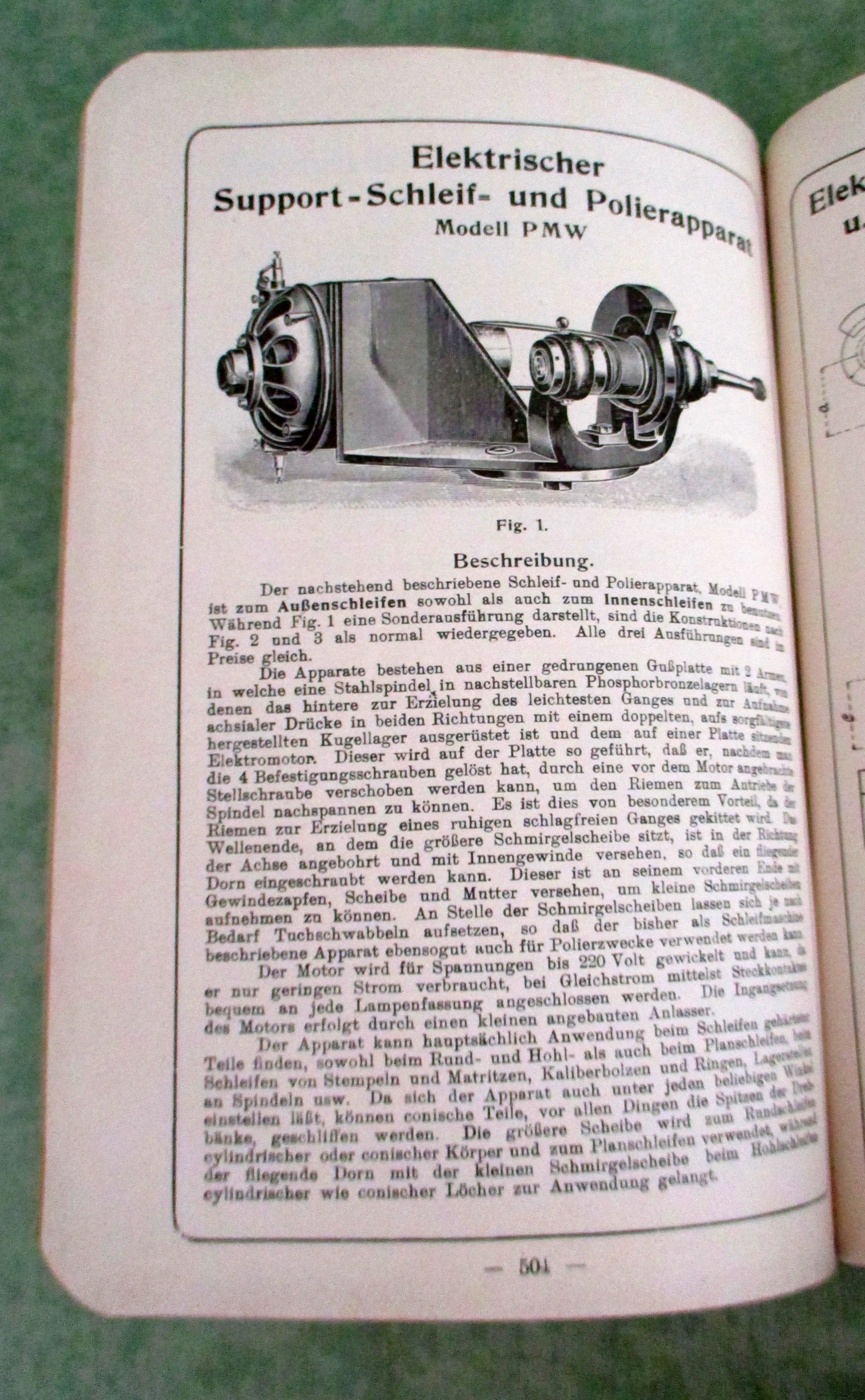 Kleiner, umfangreicher Katalog mit einem äußerst umfassendem Angebot an aller Art von elektrischen Bohrmaschinen, fahrbaren Elektromotoren, biegsamen Arbeitswellen, Schleif- und Poliermaschinen, Hochdruck-Ventilatoren, Elektro-magnetische Aufspann-Apparate, Elektro-Magnet-Greifer und Spannstöcke, Entmagnetisier-Apparate.