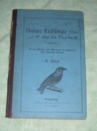 Stubenvögel-, Geflügel-, und Taubenliteratur Zinck, A. Unsere Lieblinge aus der Vogelwelt. Deren Pflege und Wartung in gesunden und kranken Tagen. Langensalza. Schulbuchhandlung von F.G.L. Greßler. 1899. 71 Seiten. Originalhalbleinen. Rücken mit kleinen Läsuren, insgesamt gutes Ex.!