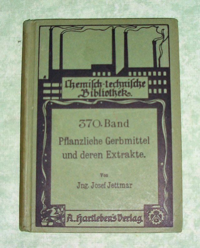 Chemische Technologie Jettmar, Josef. Pflanzliche Gerbmittel und deren Extrakte. ein unentbehrlicher Leitfaden für alle Lohgerber und Lederfabrikanten. Wien/Leipzig. Hartleben. 1922. VIII, 216 Seiten, 33 Abb. Originalpappband. Sehr gutes Ex.! A. Hartlebens chemisch-technische Bibliothek Bd. 370.