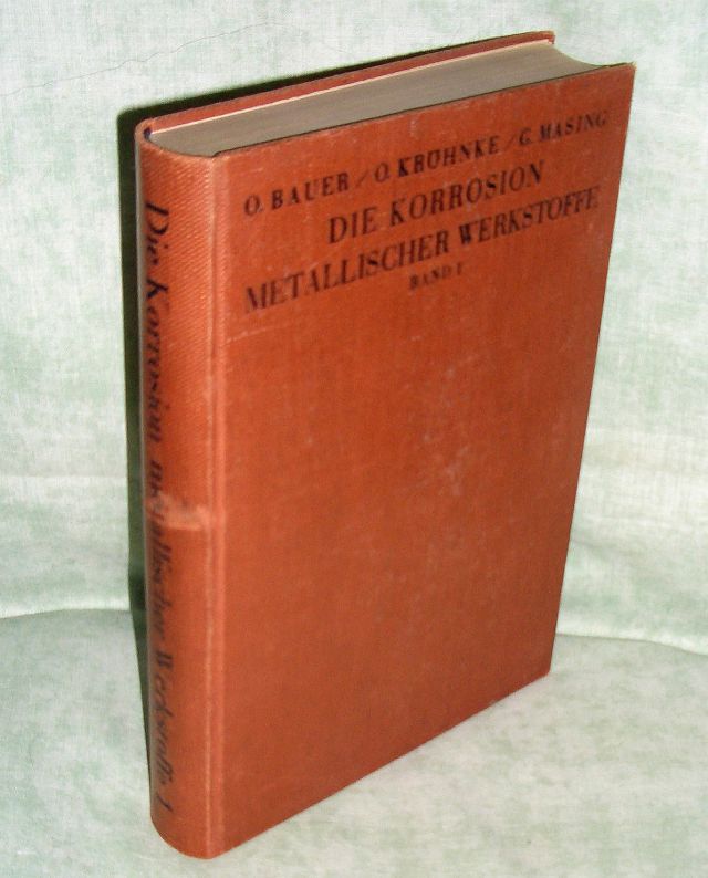 Chemische Technologie Masing, G. et al. Die Korrosion des Eisens und seiner Legierungen. Leipzig, Hirzel, 1936. XXIII, 560 S. Ill., graph. Darst. Originalleinen. Exbibliotheksex. aus der Kekulébibliothek der Farbenfabriken Leverkusen mit Exlibris und Bibliotkesstempel. Einband leicht berieben, insgesamt gutes Ex. Die Korrosion metallischer Werkstoffe. Bd. 1.