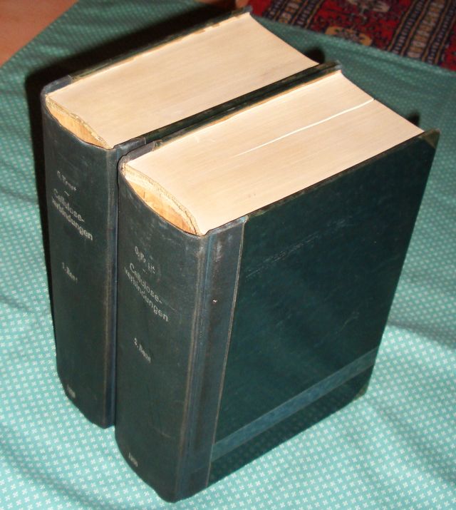 Chemische Technologie Faust, O. (Hrsg.). Celluloseverbindungen und ihre besonders wichtigen Verwendungsgebiete. Dargestellt an Hand der Patent-Weltliteratur. : dargestellt an Hand der Patent-Weltliteratur; in zwei Bänden. Erster Band: Cellulosevorbehandlung, Celluloseester anorganischer Säuren und Celluloseester aliphatischer, aromatischer und heterocyclischer Carbonsäuren und Sulfosäuren sowie die zugehörigen Äther-Esterverbindungen. 2. Band: Alkalicellulose, Viscose, Celluloseäther, Kupferoxydammoniak- und andere Celluloselösungen, Cellulosefolien, – kapseln und -schläuche sowie Vulkanfiber (einschl. Wasserfestmachung), Pergamentpapier. Berlin, Springer, 1935. VII . 3098 Seiten. Mit zahlreichen Textabb. Glanzfolienkaschiertes Bibliothekshalbleinen mit silbergepr. Rücken. Bibliotheksex. aus der Kekulé-Bibliothek der Farbenfabrik Bayer. Mit leichten Gebrauchs- und Lagerspuren, iinnnen sauber und anstreichungsfrei. Insgesamt gute Ex.
