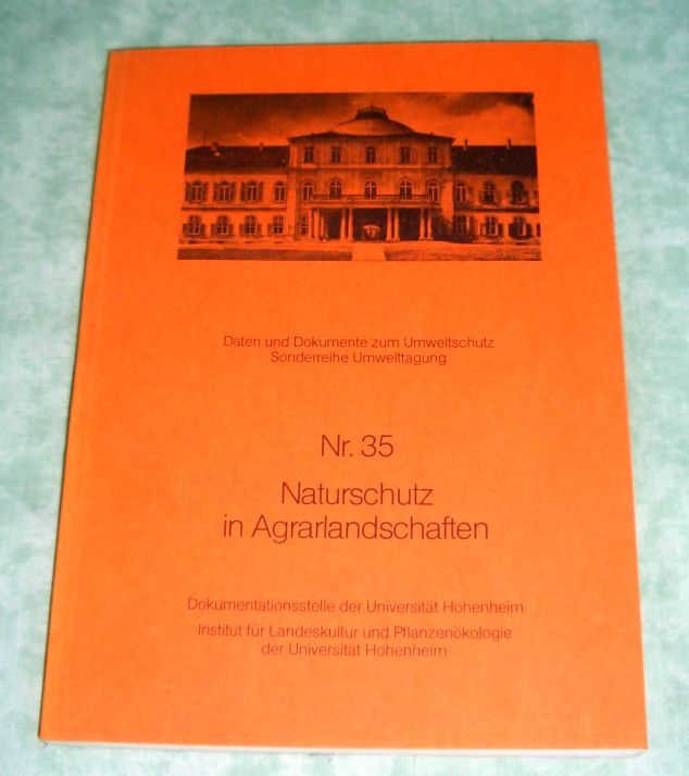 Biowissenschaften + Naturschutz Naturschutz in Agrarlandschaften. Tagung über Umweltforschung der Universität Hohenheiim. 9 Vorträge. [Stuttgart-] Hohenheim, 1983. 21 cm. 149 S., graph. Darst. Kart. Daten und Dokumente zum Umweltschutz : Sonderreihe Umwelttagung ; 35.