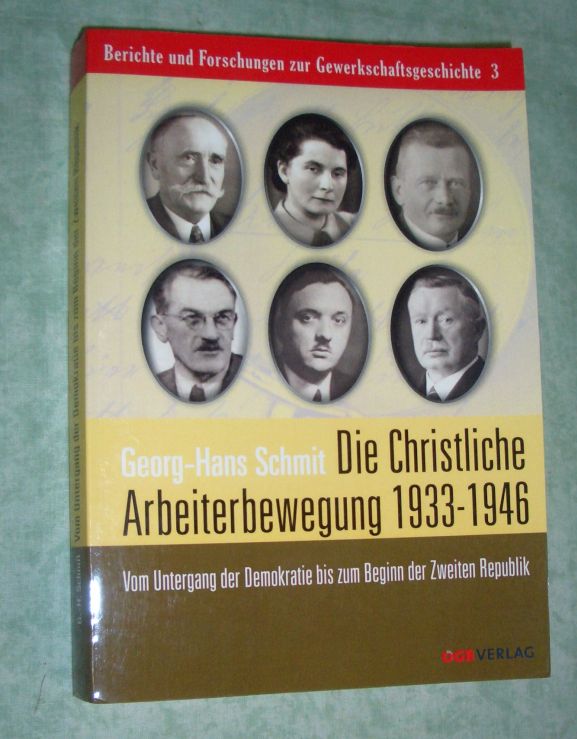 Österreich – Geschichte – Zeitgeschichte Schmit, Georg-Hans. Die christliche Arbeiterbewegung in den Jahren 1933 – 1946. Vom Untergang der Demokratie bis zum Beginn der Zweiten Republik. Wien. ÖGB Verlag. 2013. 21 cm. 304 Seiten, Textillustr. Paperback. Berichte und Forschungen zur Gewerkschaftsgeschichte ; 3.