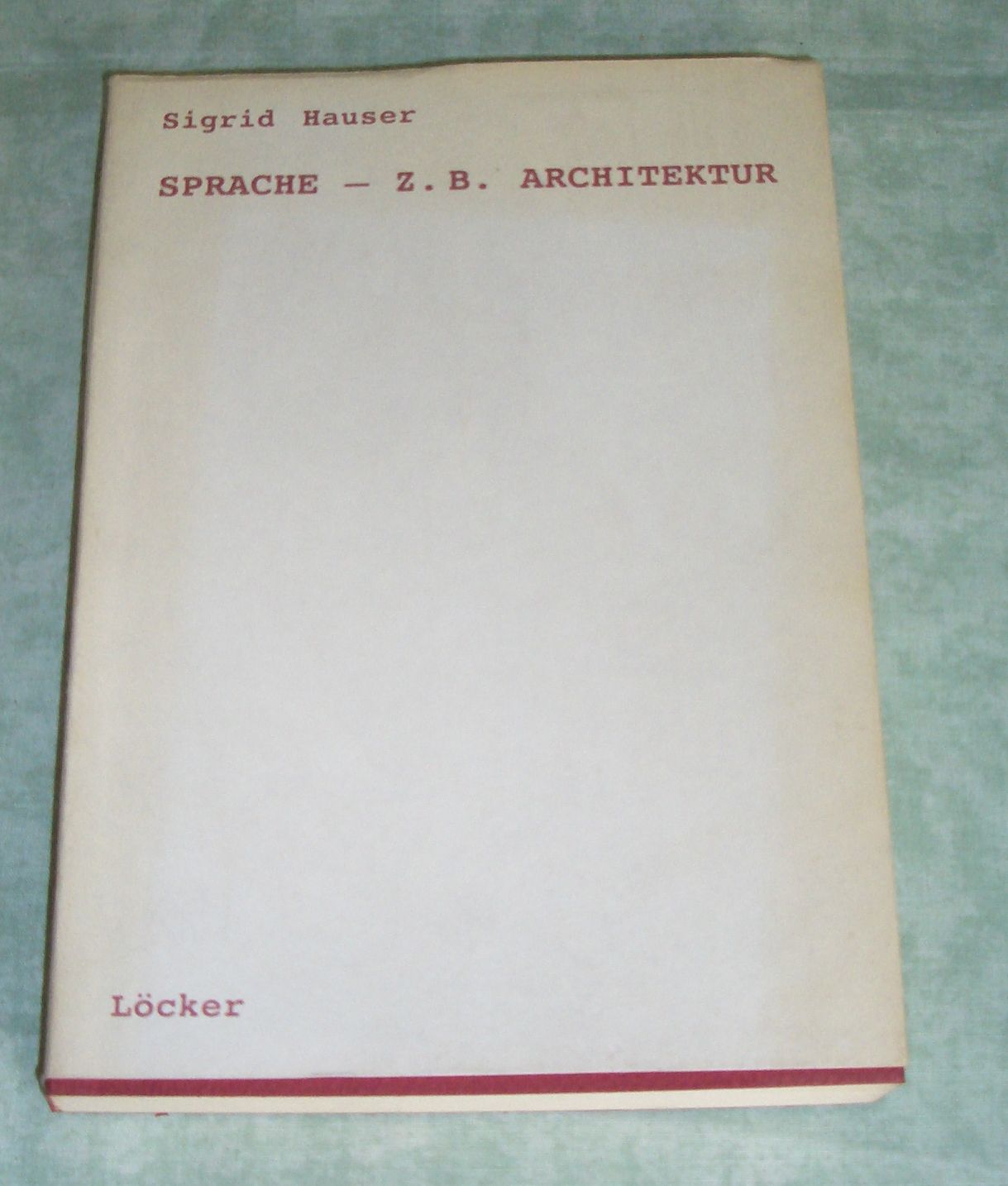 Architektur + Bauwesen Hauser, Sigrid: Sprache – z.B. Architektur. Wien. Löcker. 1998. 21 cm. 226 Seiten, illustr. kart. Einband mit leichtem Lichtrand. Literaturverz. S. 225 – [227]