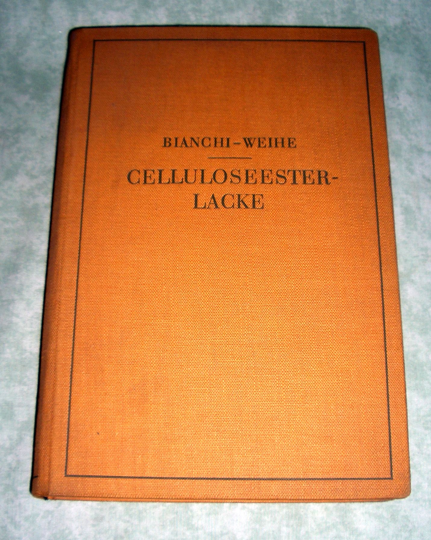 Chemische Technologie Bianchi, Calisto: Celluloseesterlacke. die Rohstoffe, ihre Eigenschaften und lacktechnischen Aufgaben; Prinzipien des Lackaufbaues und Beispiele für die Zusammensetzung; technische Hilfsmittel der Fabrikation. Deutsche völlig neubearb. Ausg. von Adolf Weihe. Berlin. Springer. 1931. 8“. VI, 329 Seiten, 71 Textabb. Originalleinen. Anbei: Deutsche Hydrierwerke: Lösungs- und Weichmachungsmittel für Celluloselacke. 19 Seiten.