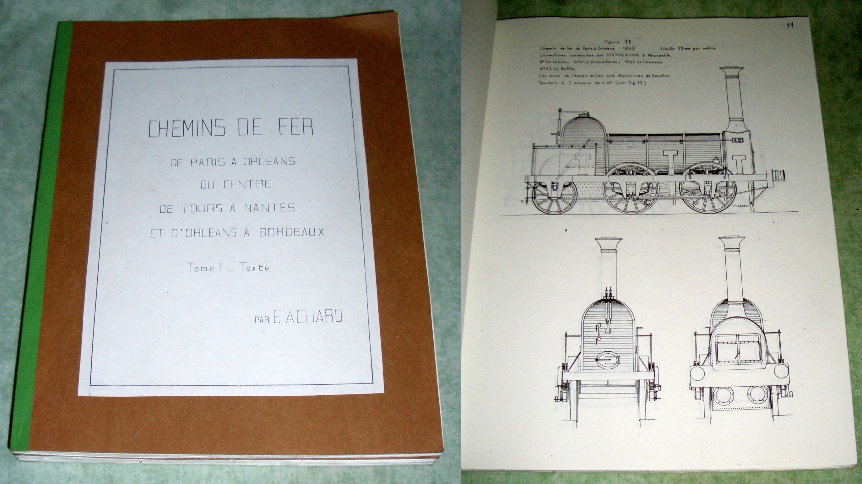 Eisenbahn Achard, F. Chemins de Fer. De Paris a Orleans du centr de Tours a Nantes et d’Orleans a Bordeaux. 2 vols. Tome I: Text 129 p. Tome II:93 plans et figures. Toulon. Auto-publié. 1983. Typoskript.