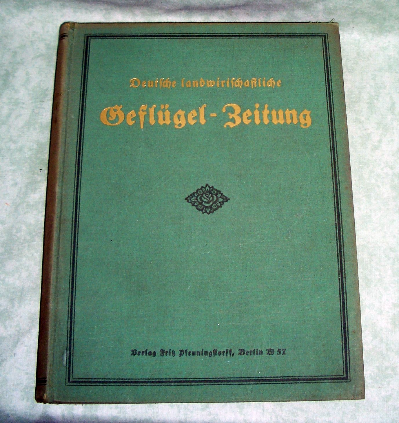 Stubenvögel-, Geflügel-, und Taubenliteratur 35. Jg. Deutsche landwirtschaftliche Geflügel-Zeitung. Illustrierte Wochenschrift zur Förderung der deutschen Nutzgeflügelzucht.Vereinsblatt des Clubs Deutscher Geflügelzüchter. Fünfunddreißigster Jahrgang. Vom 1. Oktober 1931 bis 30. September 1932) Berlin. Fritz Pfenningstorff, 1018 Seiten, zahlr. Abb. Kompletter Jahrgang Im Originaleinband. Rücken etwas ausgebleicht, ansonsten in sehr gutem Zustand. Exlibris am Vorsatz.