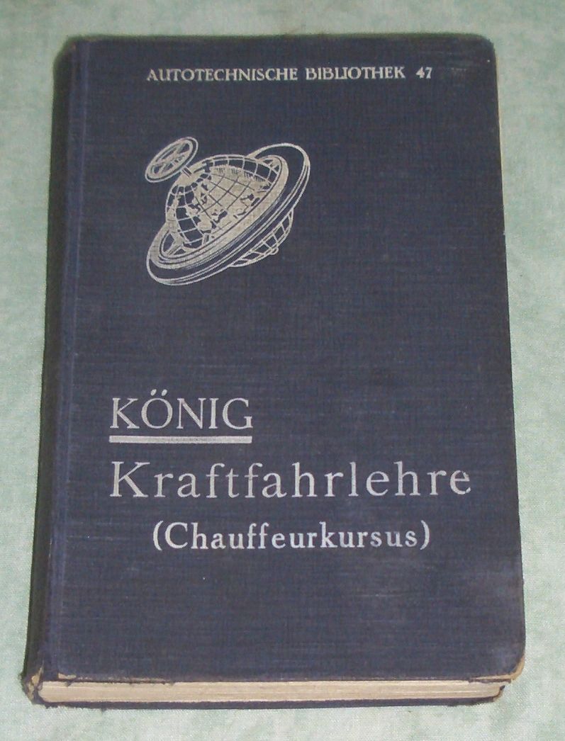 Auto + Motorrad König, Adolf. Kraftfahrlehre. [Chauffeurkursus] ; Gemeinverständl. Lehrb. nebst Fragen u. Antworten f. d. Prüfg d. Kraftwagen-Besitzer u. -Führer. 12., verb. Auflage. Berlin. R. C. Schmidt & Co.. 1929 [Ausg. 1928]. kl. 8. 408 S. Mit 168 Abb., 1 Motorentaf. u. 2 farb. Taf. Mit Gebrauchsspuren: Einband berieben, Ecken bestossen, Autotechnische Bibliothek, Bd. 47.