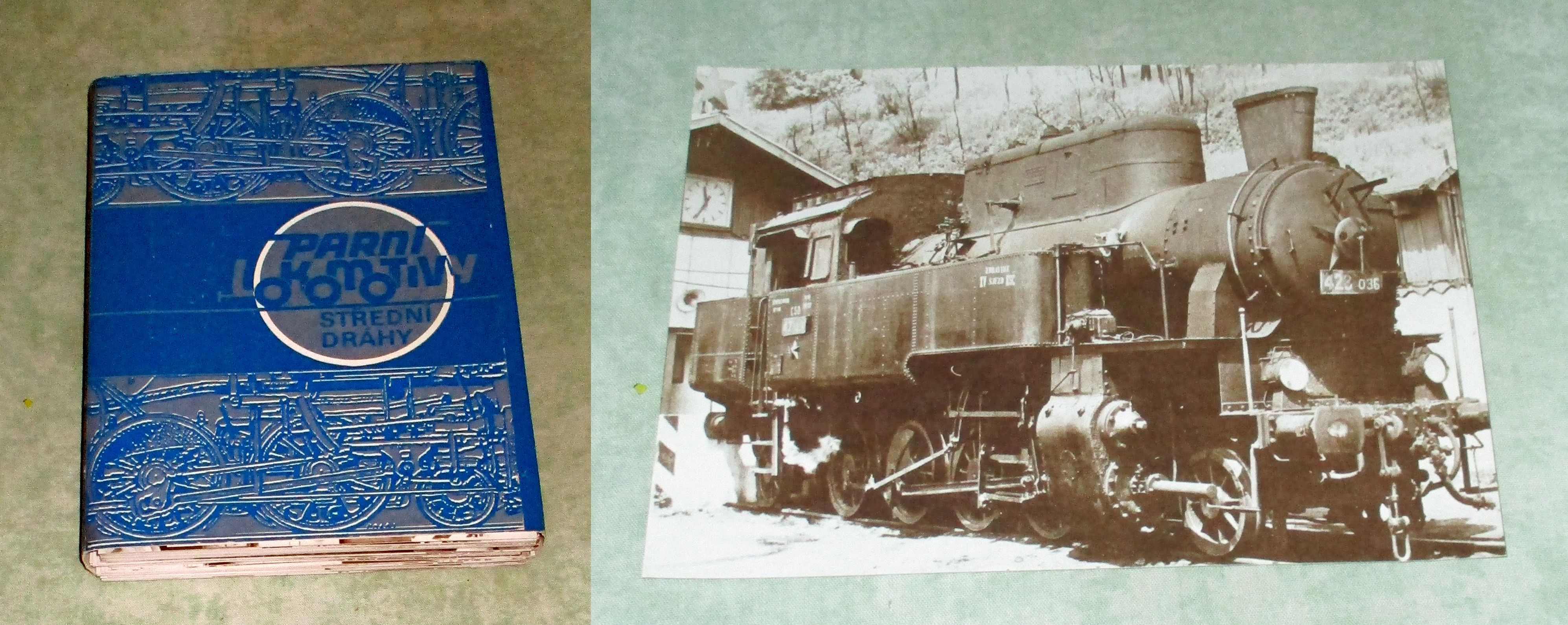 Eisenbahn Parni Lokomotivy Stredny Drahy. 1989 Dampflokomotiven der Zentralbahn, Region Olomouc. 55 Fotografien von Dampflokomotiven im Postkartenformat. Auf der Rückseite Typenbezeichnung und Beschreibung.