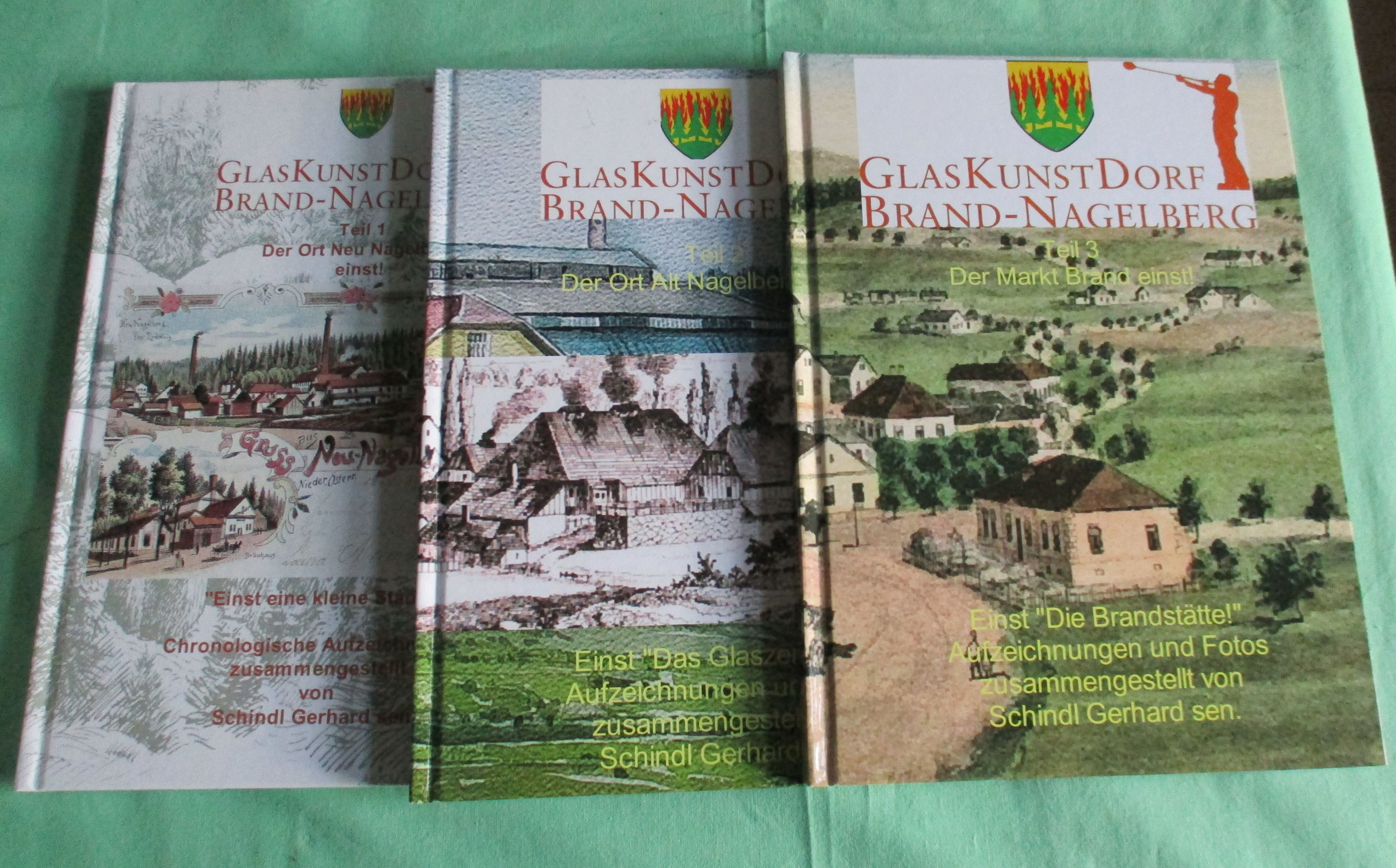 Niederösterreich – Orts- und Landeskunde Schindl, Gerhard. Glaskunstdorf- Brand-Nagelberg. Teil 1: Der Ort Neu Nagelberg einst! Teil 2: Der Ort Nagelberg einst! Teil 3: Der Markt Brand einst! 2013/2014. 48.63.96 Seiten. Reich illustriert. Hardcover. Neuwertig!