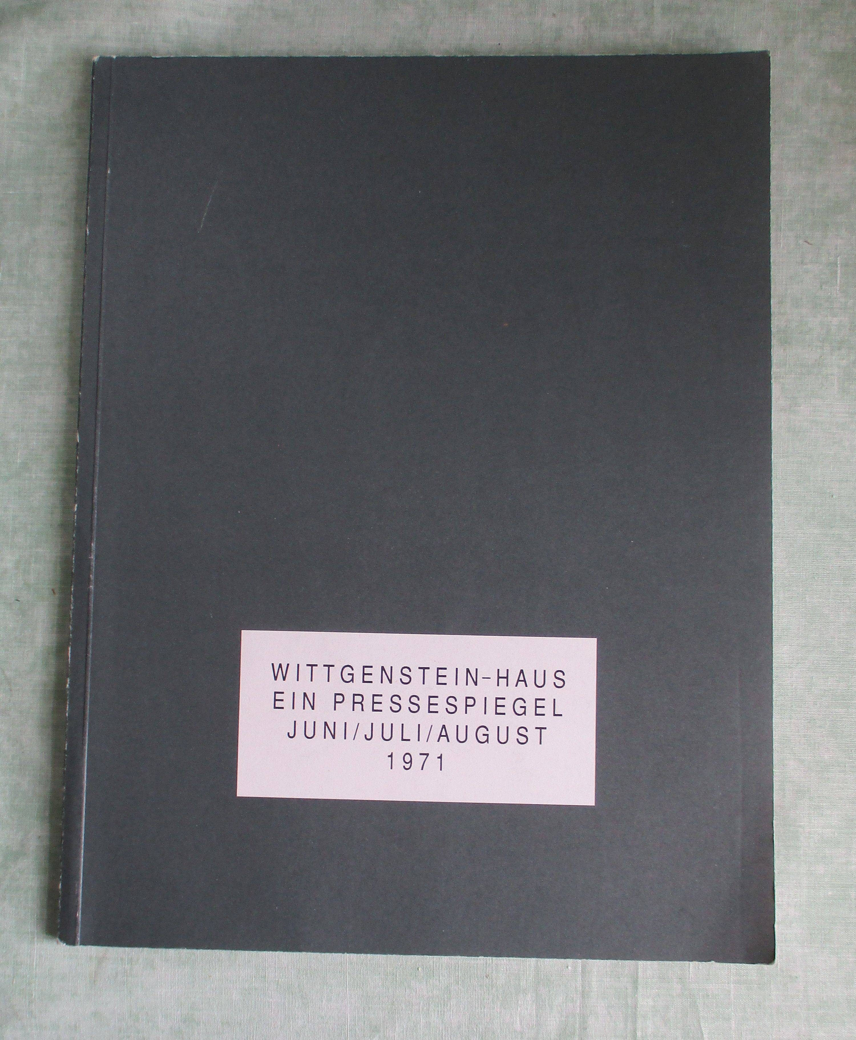 Architektur + Bauwesen Wittgenstein-Haus. Ein Pressespiegel Juni, Juli, August 1971 ; Dokumentation anlässlich der Ausstellung Wittgenstein – Wiener Secession, 12. September – 29. November 1989 in der Wiener Secession und im Haus Wittgenstein. Wien, Wiener Secession, 1989. 30 cm. 77 Seiten. kart.
