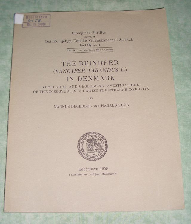 Geowissenschaften – Paläontologie Degerbol, Magnus / Krog, Harald. The Reindeer (Rangifer tarandus L.) in Denmark. Zoological and Geological Investigations of the Discoveries in Danish Pleistocene Deposits. Kobenhaven. 1959. -4°. 165 p., 36 textillustr., 4 plates.