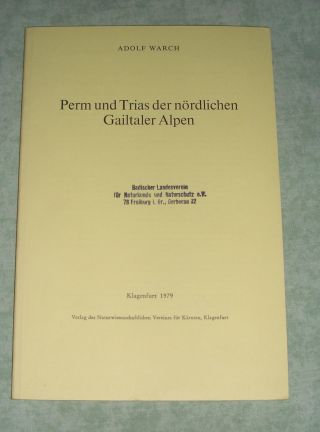 Geowissenschaften – Paläontologie Warch, Adolf. Perm und Trias der nördlichen Gailtaler Alpen. Klagenfurt. Naturwissenschaftl. Verein für Kärnten. 1979. 23 cm. 111 Seiten., mit 5 Textabb., einem Karten- und einem Profilblatt. Kart. Stempel am Einband und Titel. Carinthia : 2, Naturwissenschaftl. Beitr. zur Heimatkunde Kärntens : Sonderh. ; 35. Literaturverz. S. 107 – 111.
