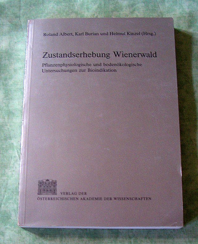 Botanik + Gartenbau Albert, Roland/Burian, Karl/Kinzel, Helmut [Hrsg.]: Zustandserhebung Wienerwald. Pflanzenphysiologische und bodenökologische Untersuchungen zur Bioindikation. Wien. Verl. der Österr. Akad. der Wiss. 1991. 25 cm. 288 Seiten, graph. Darst. kart. Literaturangaben