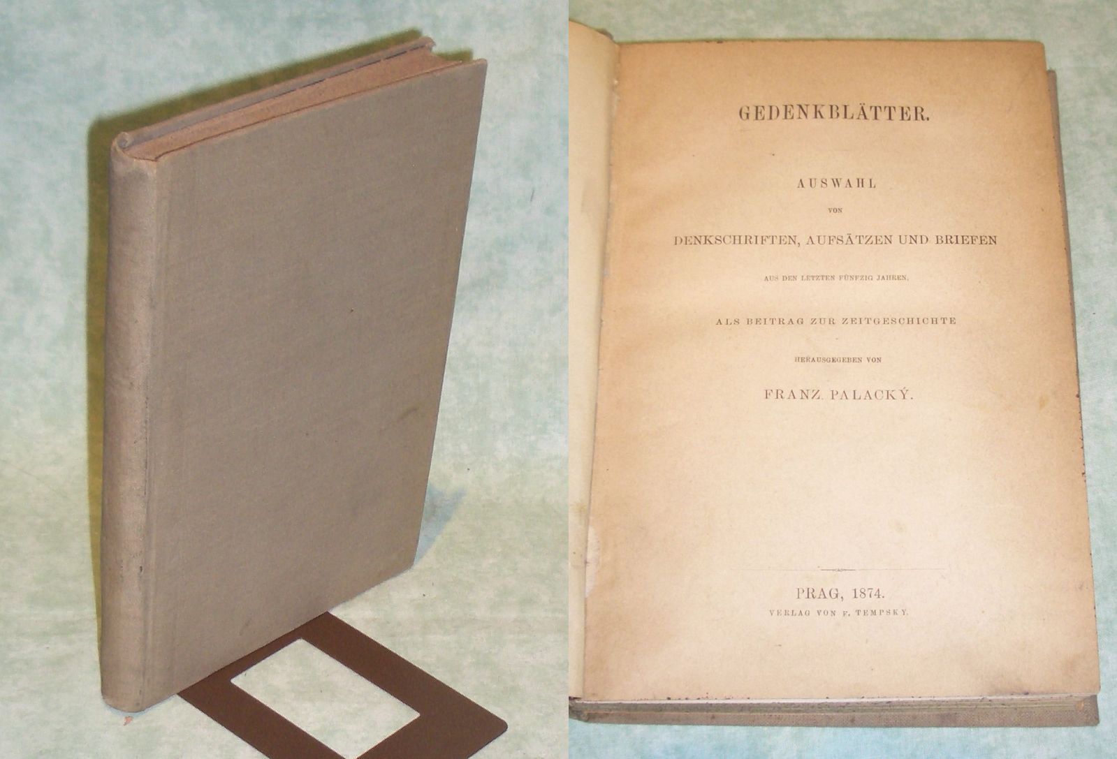 Böhmen / Mähren / Sudeten Palacky, Franz (Hrsg.). Gedenkblätter. Auswahl von Denkschriften, Aufsätzen und Briefen. Als Beitrag zur Zeitgeschichte. Prag. Tempsky. 1874. Schlichter Leinenband. Auf einigen Seiten Anstreichungen und Anmerkungen mit Bleistift und Buntstift. Aufsatzsammlung des großen Historikers Frantisek Palacký (1898-1876), eines »Vaters der Nation«, der auch als Politiker wesentlich zum Aufbau des tschechischen Nationalbewusstseins beitrug.