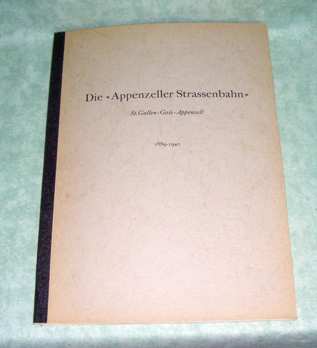 Eisenbahn Gächter, Arthur. Die „Appenzeller Strassenbahn“. St. Gallen-Gais-Appenzell. 1889-1940. Ein historischer Rückblick. Teufen. Im Eigenverlag. 1956. 85 Seiten, Typoskript. zahlr. Textabb. (Fotos, Diagramme etc.) 1 ausfaltbares farbiges Panorama.