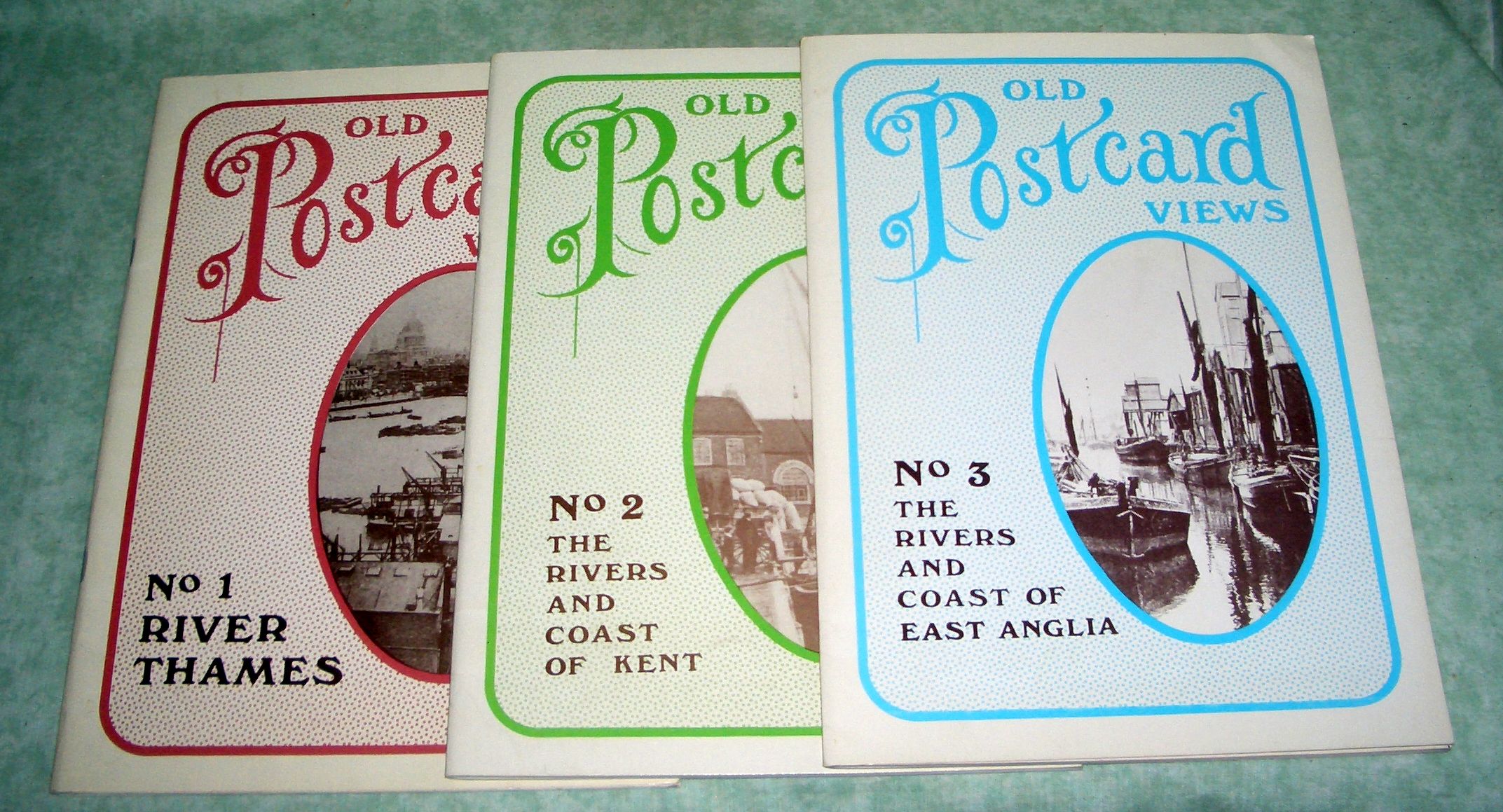 Marinegeschichte – Schiffe + Schifffahrt Old Postcard Views from the Walter Dowsett collection. N° 1: River Thames N° 2: The Rivers and coast of Kent. N° 3: The Rivers and Coast of East Anglia. Approx. 60 postcards in each issue. Brochure. The postcards mainly with views of ships