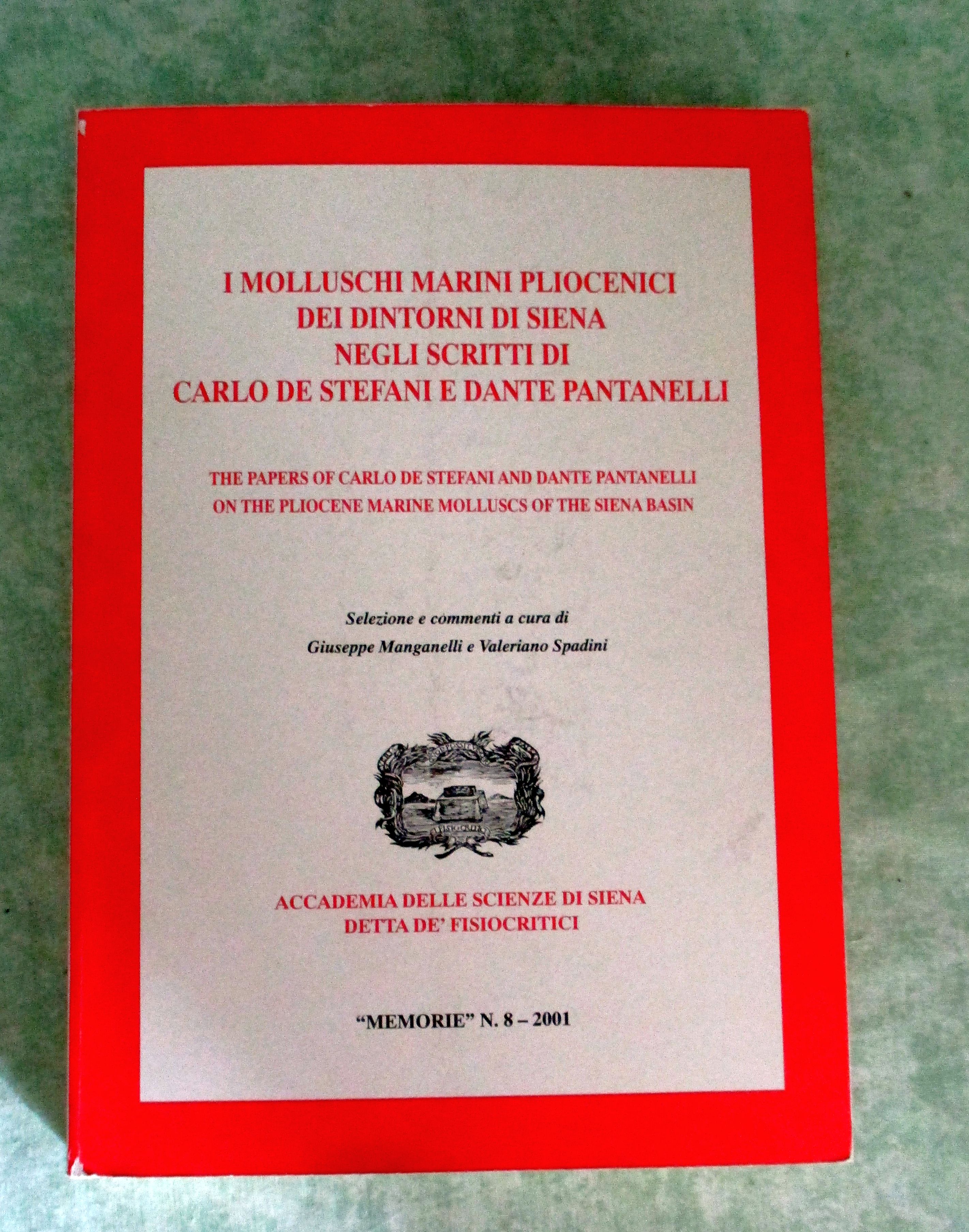 Meeresbiologie + Limnologie + Hydrobiologie I mollusci marini Pliocenici dei dintorni di Siena negli scritti di Carlo de Stefani e Dante Pantelli – The papers of Carlo de Stefani and Dante Pantanelli on the pliocene Marine Molluscs of the Siena Basin. 2001 366 p. Paperback. Accademia della Scienze di Siena detta de’ Fisiocritici „Memorie“ N° 8.
