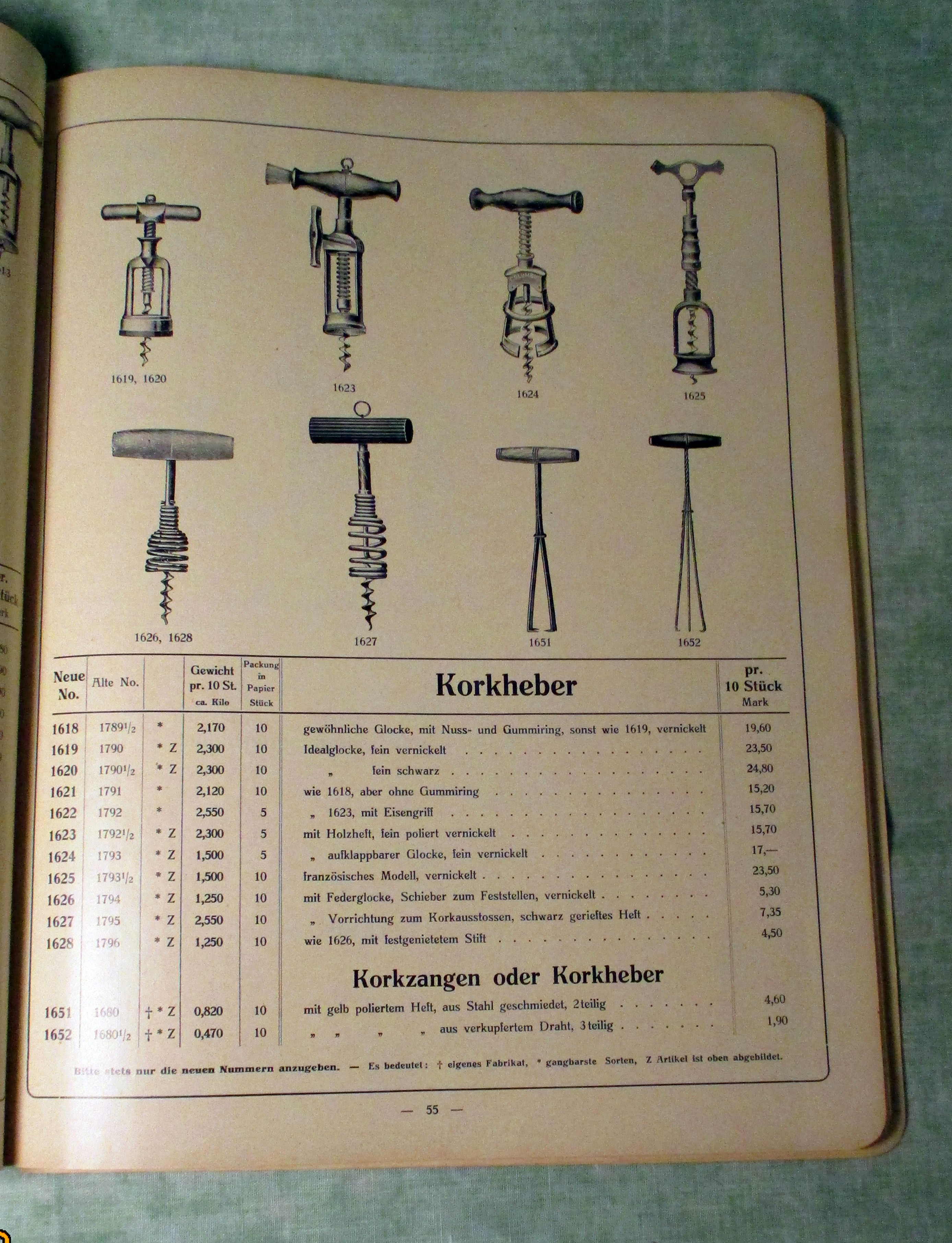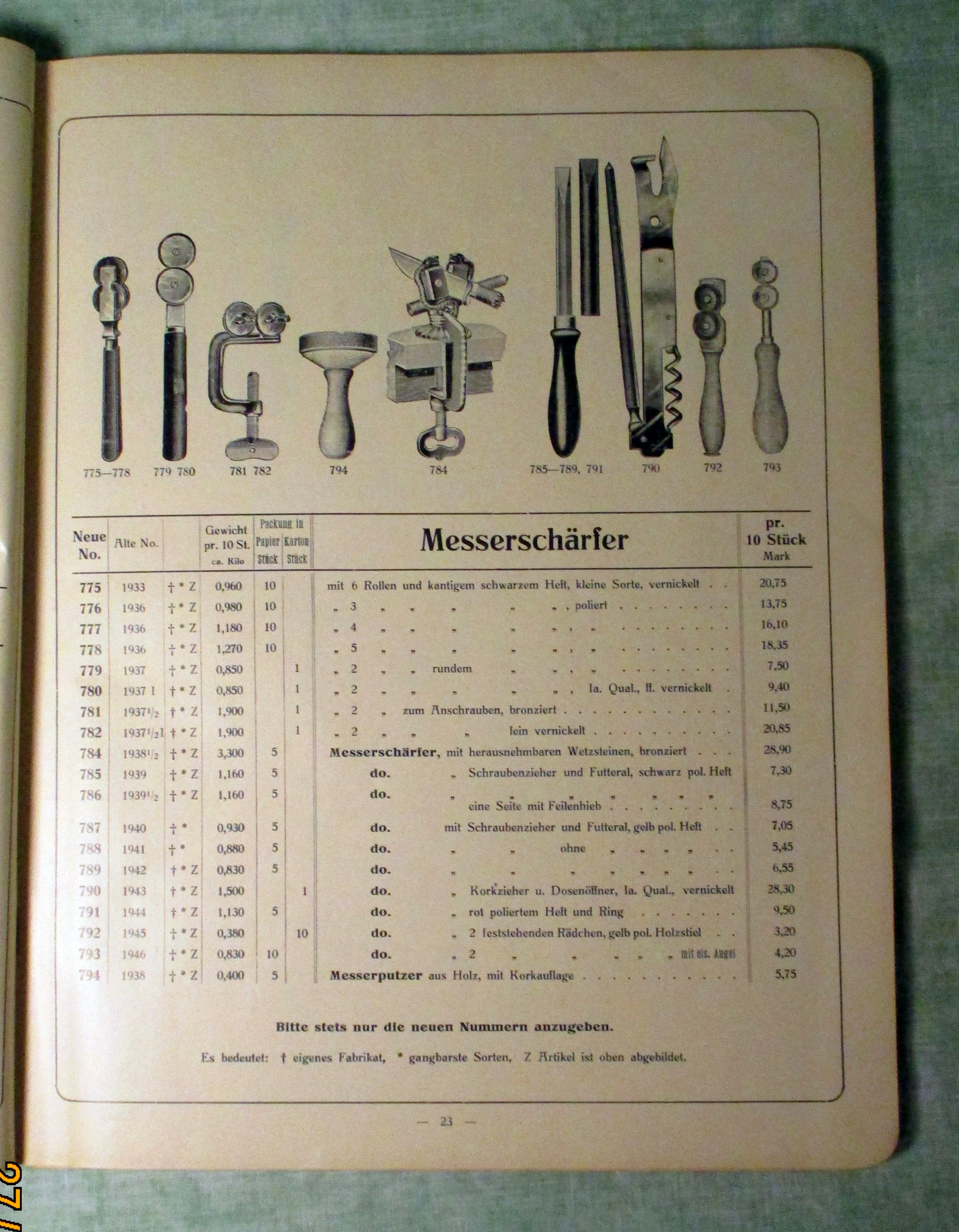 Firmengeschichte + Firmenkataloge Preis-Liste von Otto Klett, Benshausen in Thüringen. Eisenwaren-, Werkzeug- und Haushaltungsartikel-Fabrik mit Dampfbetrieb. Abteilung I: Spezialartikel eigener Produktion. Abteilung II: Kurzwaren des Schmalkalder Industriebezirks. Massenfabrikation von Bullenringen, Bullenzangen, Pfeffermühlen, Dosenöffnern, Nussknackern, Pinzetten, Schuhknöpfern, Sägenschränkeisen, Fruchtstechern, Käsebohreren, Körnern, Durchschlägern, Nagelteribern, Bienengeräten, Nagelfeilen, Apfelstechern, Kartoffellöffeln und vielen anderen Artikeln. Um 1920. 184 Seiten, durchgehend illustriert. kart. In sehr gutem Zustand,