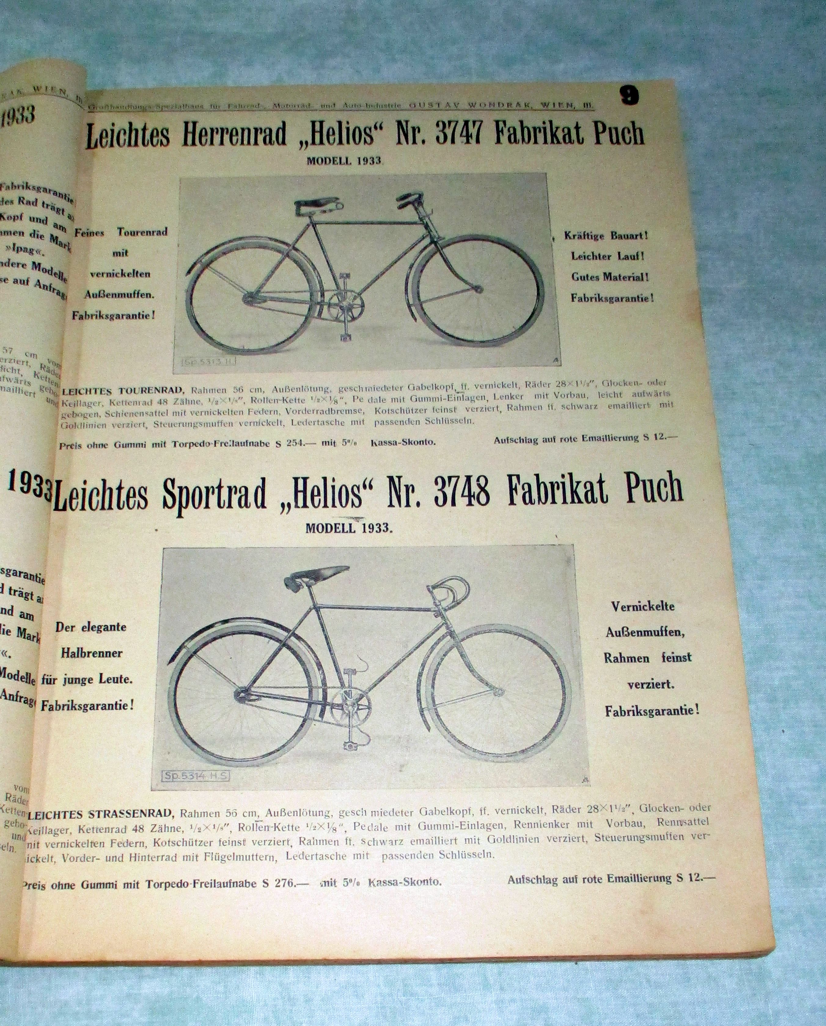 Firmengeschichte + Firmenkataloge Gustav Wondrak – Großhandlungs Spezial-Haus für Fahrrad- Motorrad- und Auto- Ersatz- und Zubehörteile. Wien III., Hauptstrasse 144. Hauptkatalog. Preisliste Nr. 380, 1933/34. 25 x 34 cm ! 188 Seiten, durchgehend illustriert. kart. Einband leicht fleckig, Bindung fest, innen sauber. Originalkatalog!