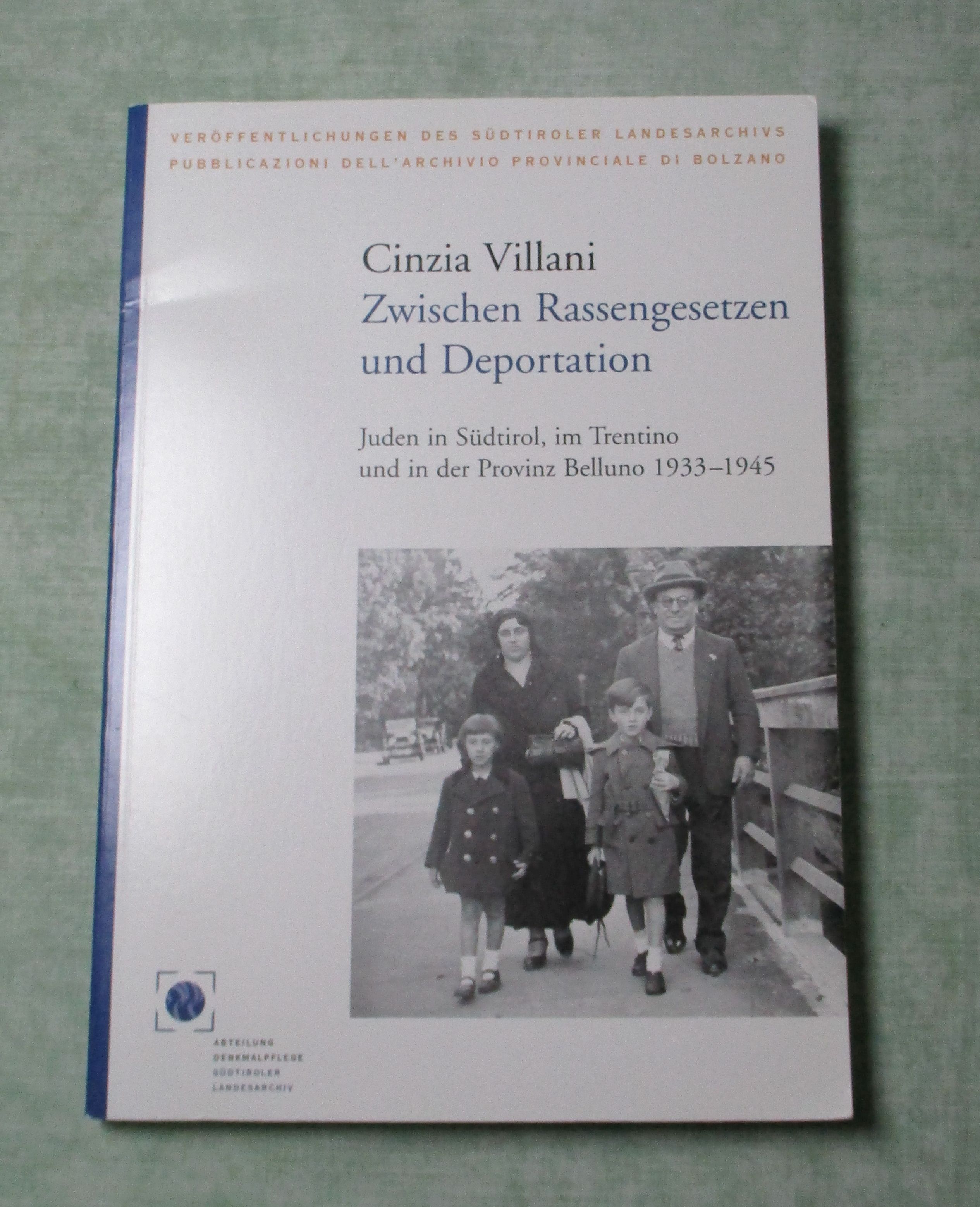 Südtirol Villani, Cinzia: Zwischen Rassengesetzen und Deportation. Juden in Südtirol, im Trentino und in der Provinz Belluno 1933 – 1945. Innsbruck. Wagner. 2003. 208 Seiten, Ill., graph. Darst. kart. Gut. Veröffentlichungen des Südtiroler Landesarchivs, 15.