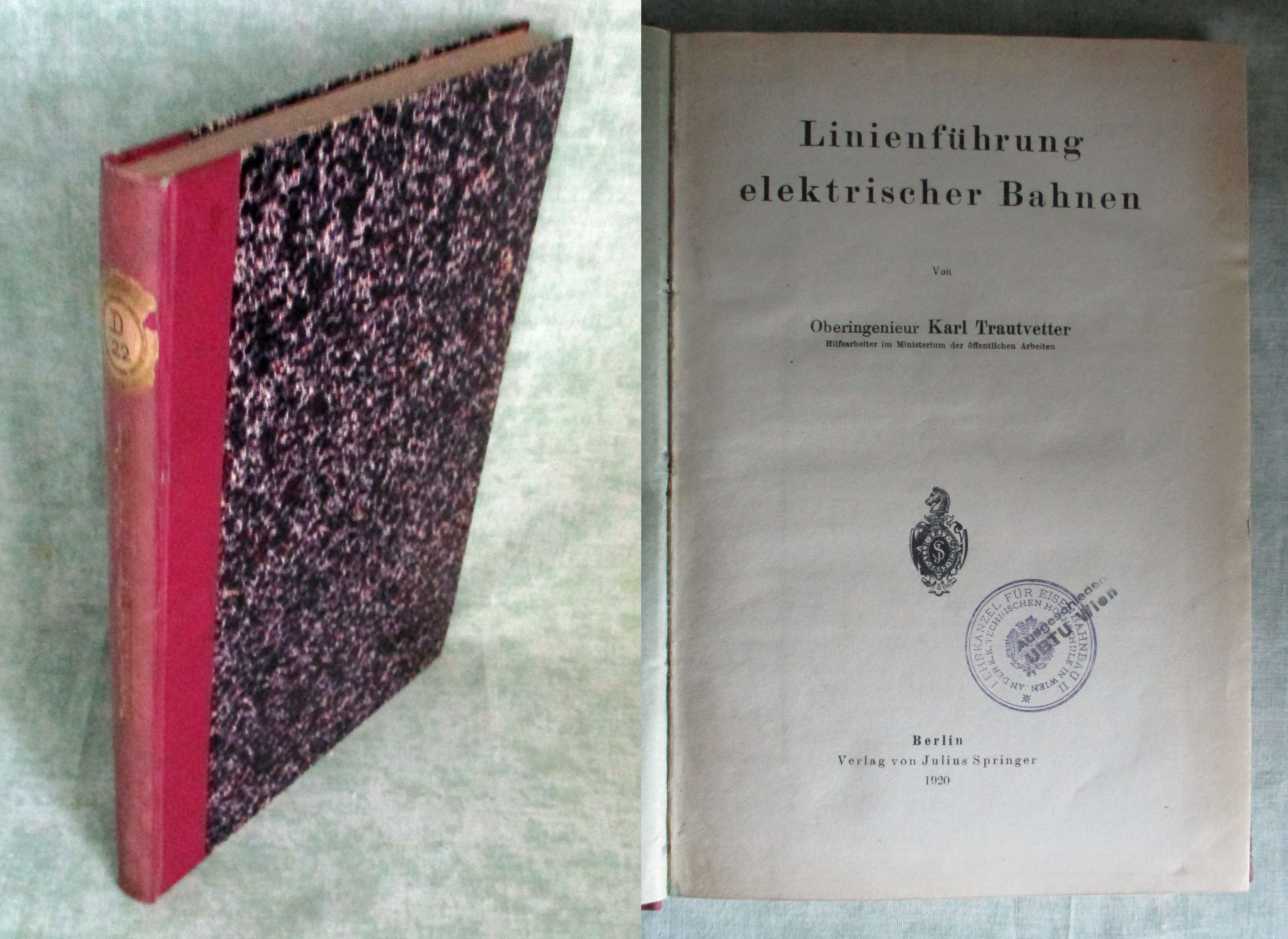 Eisenbahn Trautvetter, Karl: Linienführung elektrischer Bahnen. Berlin. Springer. 1920. 8. VI, 184 Seiten Halbleinen. Exbibliotheksex. in gutem Zustand.